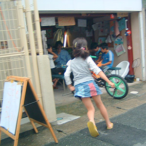 実際、2011年から2020年までは、自宅のガレージで「こうもりあそびば(こうもり広場)」という、子どもがふらっと立ち寄れる無償の遊び場を開いていました。(写真)